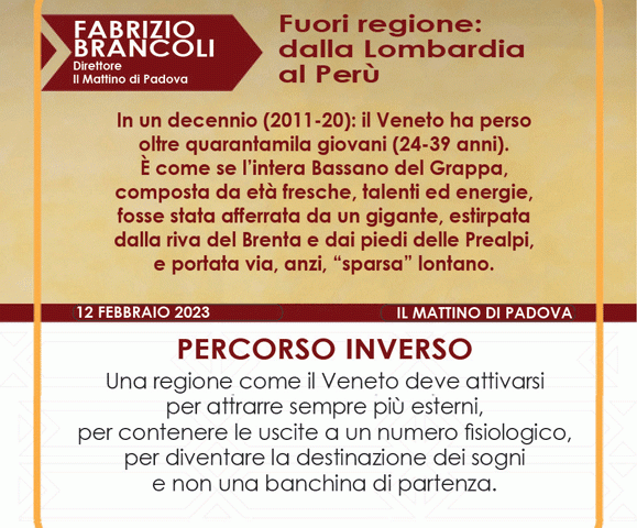 La riduzione della platea dei potenziali lavoratori. La cruciale differenza tra andarsene per sceltae andarsene perché si è con le spalle al muro. Il tema della riduzione “all’origine” della popolazione veneta e più generalmente italiana è tornato su due quotidiani regionali in…