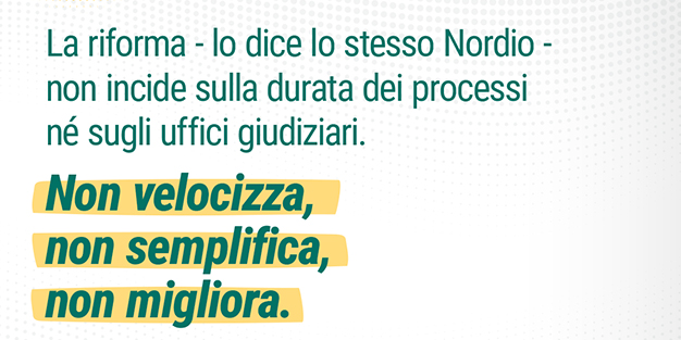 Dire No a questa riforma significa dunque rifiutare un intervento che non incide in alcun modo sui problemi concreti e urgenti della giustizia italiana.